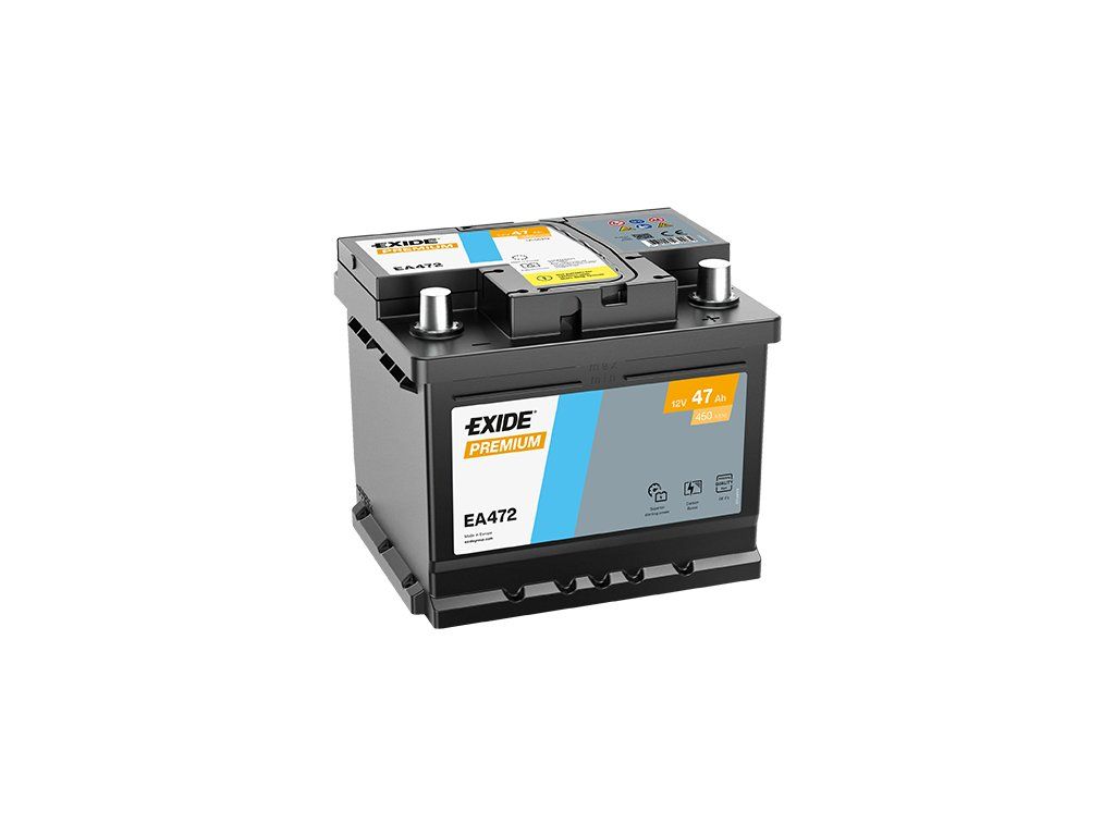 Exide Premium 12V 47Ah 450A EA472 nabitá autobaterie + Reflexní přívěsek FOOT + možný výkup staré baterie při doručení nebo v prodejně Jinočany