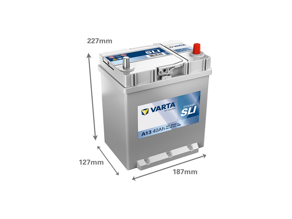 Hlavní parametry: kapacita 40Ah, startovací proud 330A, rozměr: délka 187 mm, šířka 140 mm, výška 227 mm, hmotnost: 10,10 kg, +pól vpravo.