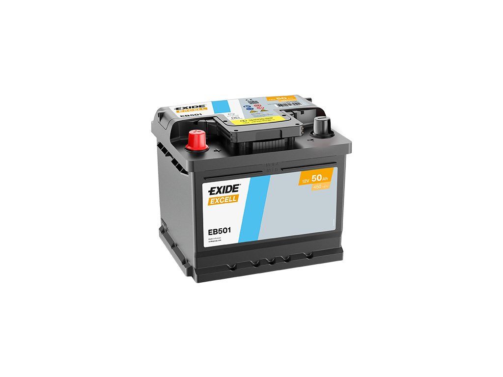 Exide Excell 12V 50Ah 450A EB501 (L) nabitá autobaterie + Reflexní přívěsek FOOT + možný výkup staré baterie při doručení nebo v prodejně Jinočany