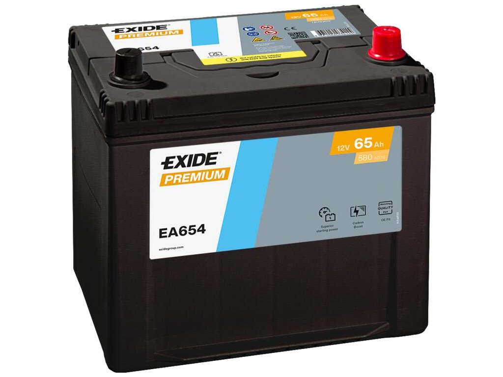 Exide Premium 12V 65Ah 580A EA654 nabitá autobaterie + Reflexní přívěsek FOOT + možný výkup staré baterie při doručení nebo v prodejně Jinočany