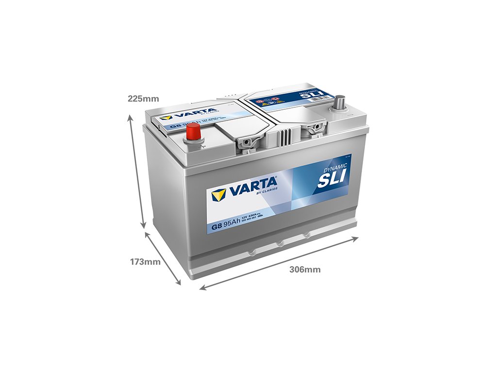 Hlavní parametry: kapacita 95Ah, startovací proud 830A, rozměr: délka 306 mm, šířka 173 mm, výška 225 mm, hmotnost: 20,23 kg, +pól vlevo.